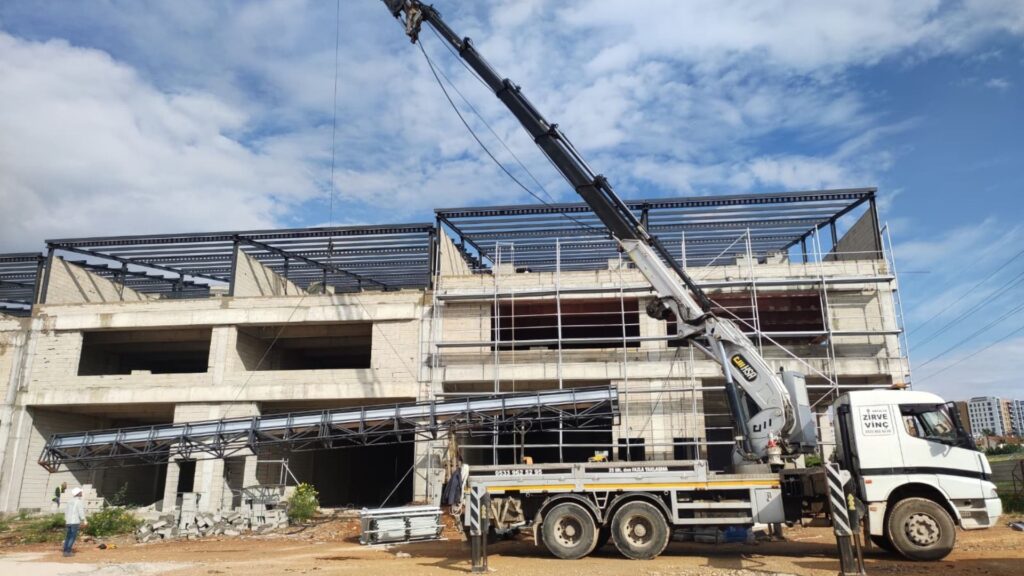 Antalya Zirve Vinç ile çelik çatı konstrüksiyonlarınız artık daha hızlı ve güvenli! Montaj ve söküm işlemlerini profesyonel ekibimizle, en yüksek hassasiyet ve kalite standartlarında gerçekleştiriyoruz. Projelerinizin sorunsuz ilerlemesi için yanınızdayız.